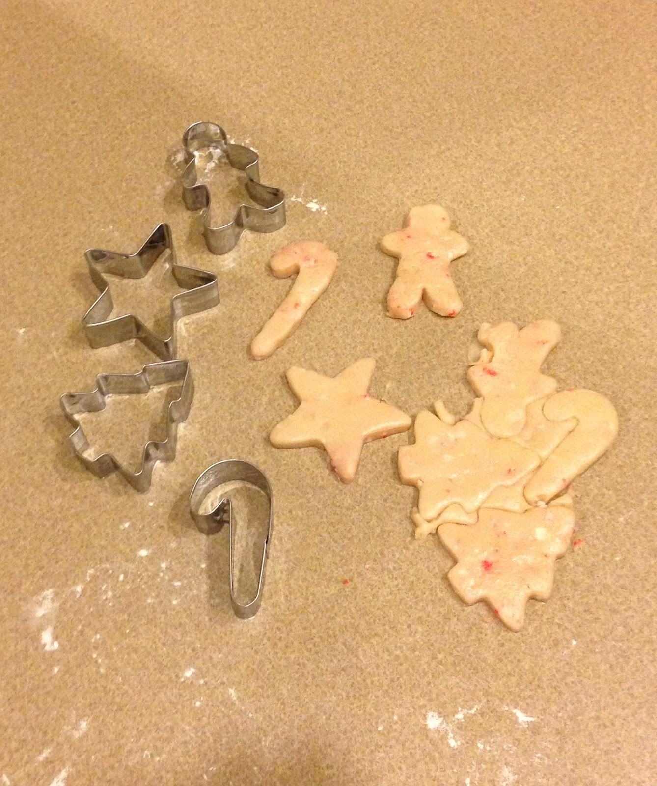 Then we wanted to share some Christmas Cheer with our friends, so Matt and I decided to make treats. It's kind of a Harrison tradition to make candy and caramel for the neighbors, so Matt made caramel and I wanted to make peppermint Christmas cookies.